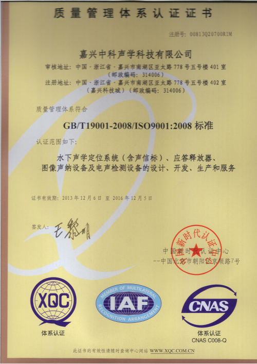 - 中科声学利通过ISO9001:2008质量?..2017-09-13